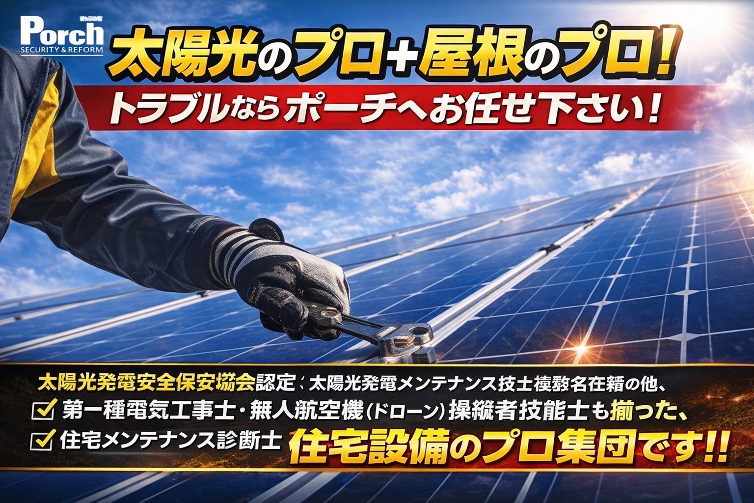 太陽光メンテナンス / 屋根のトラブルならポーチへお任せ下さい